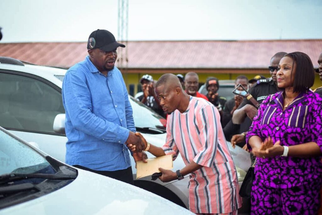 The Executive Chairman, Bomadi Local Government Council, Hon Dagidi Rawlings Andaye today Mon, 14th present official Vehicle to the leader, Bomadi Legislative Arm Hon.Wurukeseiye Doubra.