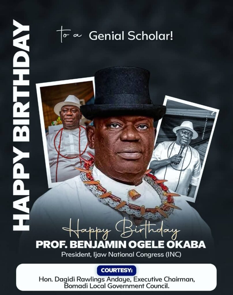 The executive chairman of Bomadi local Government,Hon Dagidi Rawlings Andaye has congratulated the President Ijaw National Congress (INC). Professor Benjamin Okaba on his Birth Anniversary.