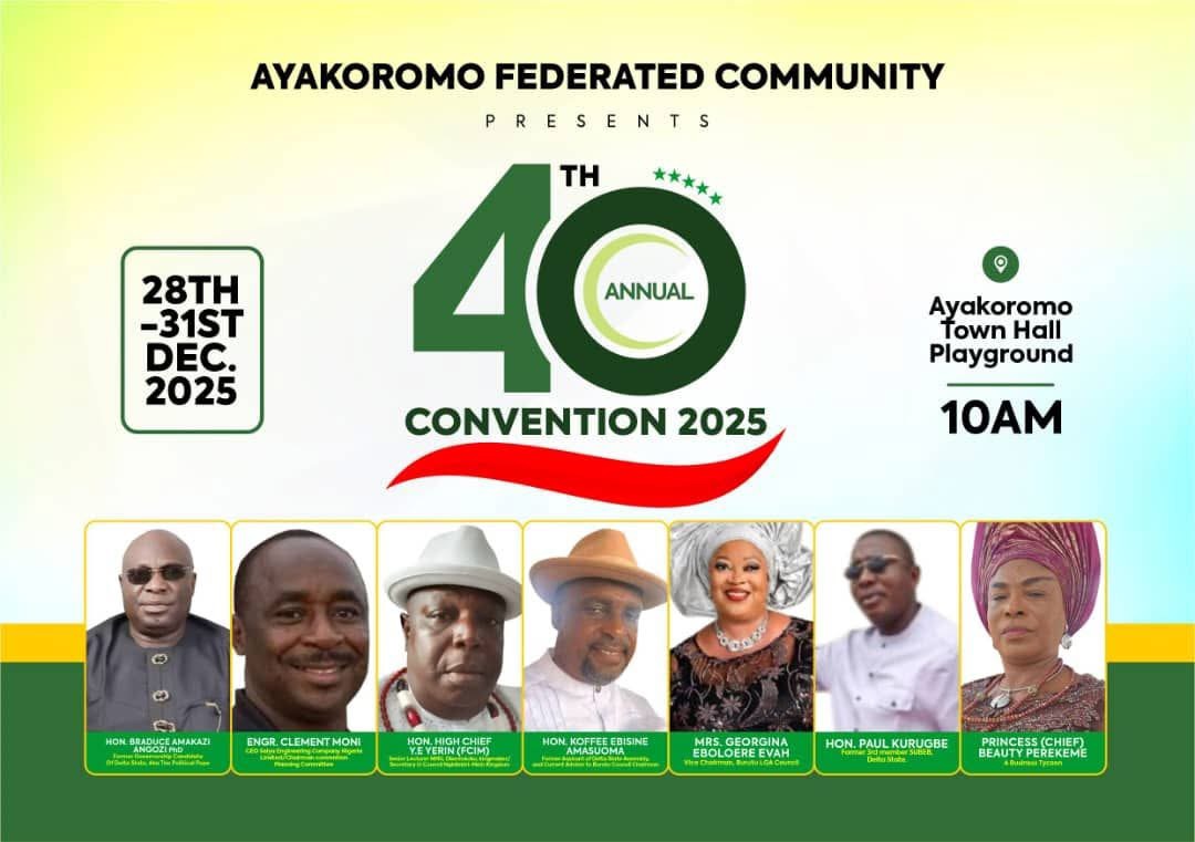 The Ayakoromo community in Burutu Local Government Area of Delta State is gearing up for its 40th annual convention, scheduled to kick off on December 29, 2025. The three-day event promises to be an exciting celebration of culture, tradition, and community bonding.